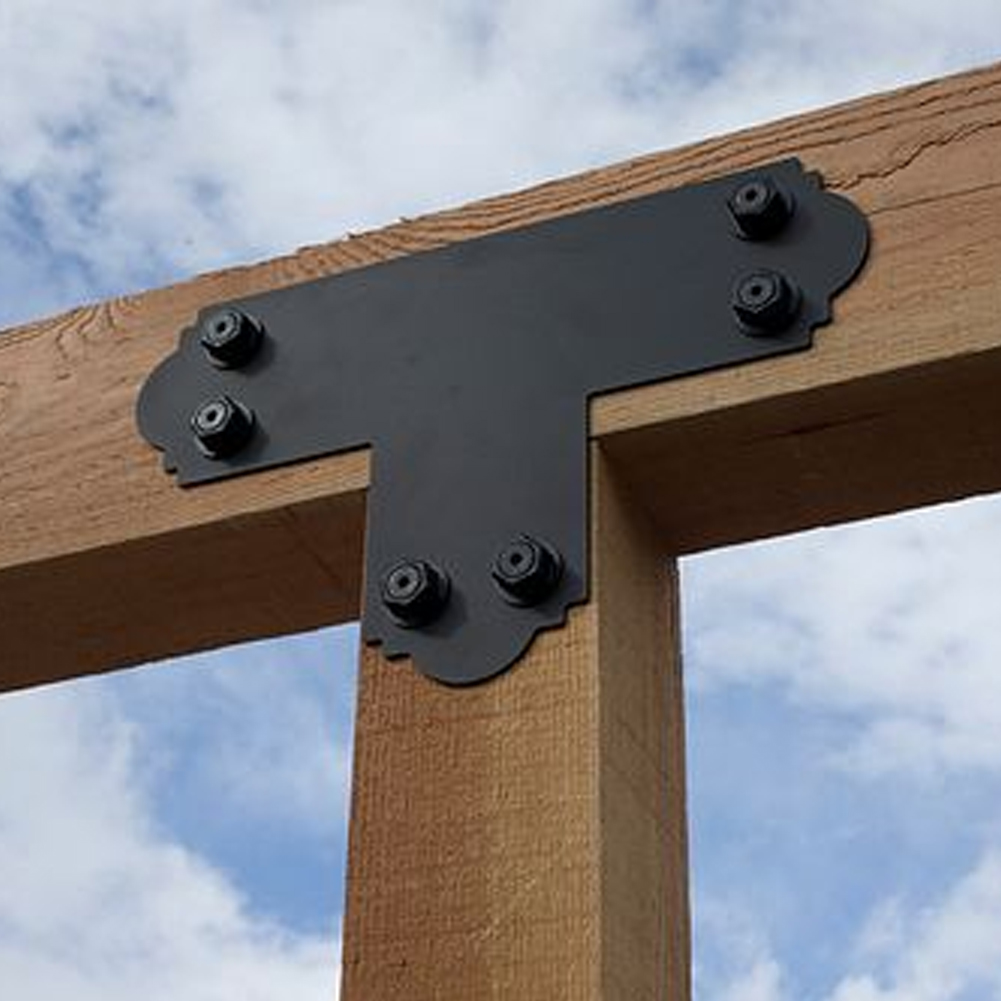 These ornamental flat T straps from Simpson Strong-Tie bring decorative appeal and lateral strength to any outdoor living space. They provide reinforcement for a connection where one lumber piece intersects another at a 90° angle. Designed for use with 4x or larger lumber.